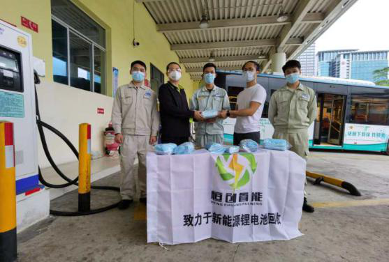 本次深圳巴士集團(tuán)的退役動力電池回收工作正好碰上疫情期間,恒創(chuàng)睿能在做好回收工作的同時,也專門給現(xiàn)場作業(yè)的一線人員配備了口罩、手套等防疫物資,保障了員工的健康安全。