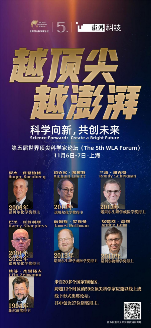 11月6日,第五屆世界頂尖科學(xué)家論壇開(kāi)幕式在上海舉行。本屆論壇由世界頂尖科學(xué)家協(xié)會(huì)、中國(guó)科學(xué)技術(shù)協(xié)會(huì)、中央廣播電視總臺(tái)主辦。論壇的主題是“科學(xué)向新 共創(chuàng)未來(lái)”。中共上海市委書(shū)記陳吉寧,中國(guó)科學(xué)技術(shù)協(xié)會(huì)主席萬(wàn)鋼,中宣部副部長(zhǎng)、中央廣播電視總臺(tái)臺(tái)長(zhǎng)慎海雄,世界頂尖科學(xué)家協(xié)會(huì)主席、2006年諾貝爾化學(xué)獎(jiǎng)得主羅杰·科恩伯格出席開(kāi)幕式并發(fā)表致辭。中國(guó)科學(xué)技術(shù)協(xié)會(huì)黨組書(shū)記、分管日常工作副主席張玉卓主持開(kāi)幕式。27位諾貝爾獎(jiǎng)得主與30余位中國(guó)兩院院士組成“頂科天團(tuán)”,與50余位青年科學(xué)家、100余位“小科學(xué)家” 和各界嘉賓以線(xiàn)上或線(xiàn)下形式出席論壇。