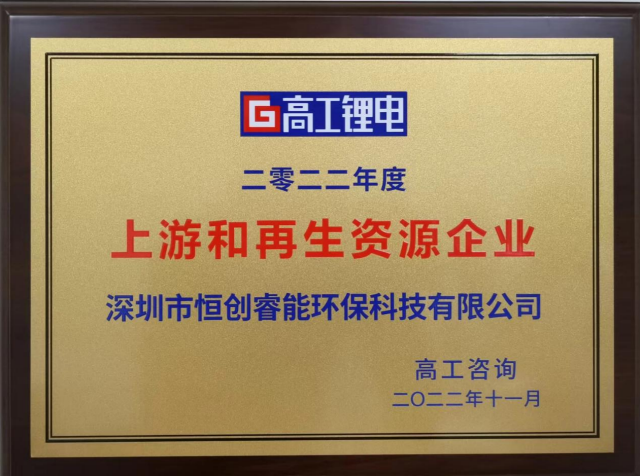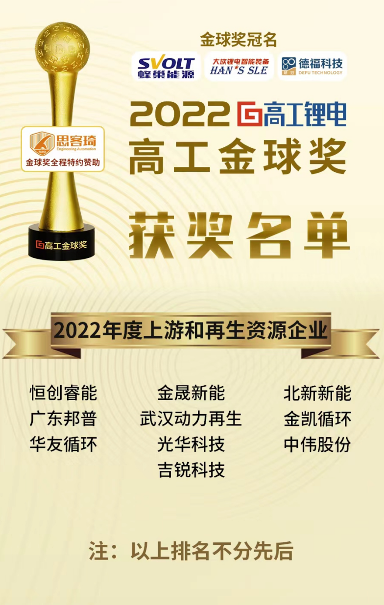 11月16日,由鋰電供應鏈資源與資本整合領導者--高工鋰電組織的2022高工鋰電金球獎頒獎典禮在深圳前海華僑城JW萬豪酒店隆重舉行,集團市場運營中心謝凡受邀出席此次頒獎盛典,并代表恒創(chuàng)睿能領取“2022年度上游和再生資源企業(yè)”獎項。
